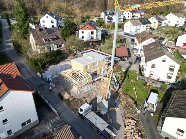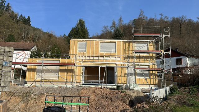 Die Fenster kommen Ende Februar, der Kamin ist auf Abruf und die Photovoltaik wartet ebenfalls auf Abruf.